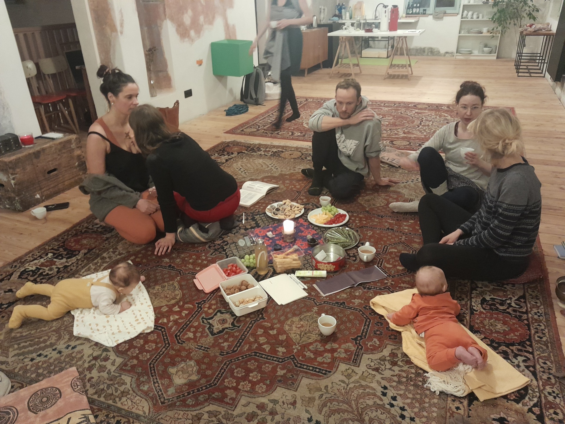 Společně utváříme prostor a také tvoříme rukama. Pod našimi prsty vznikají drobné krásné předměty, navzájem si zaplétáme vlasy nebo kreslíme na kůži ornamenty hennou. Nejsou to přástky ani draní peří, i když je možné tam určitou esenci těchto prastarých setkání zachytit. Naše setkání vychází z potřeb a přání aktuální pro tuto dobu. Každá potřebujeme být viděna a slyšena. Někdy je však zapotřebí úplné ticho, aby bylo něco slyšet. Přijď do kruhu a uvidíš, co se bude dít.